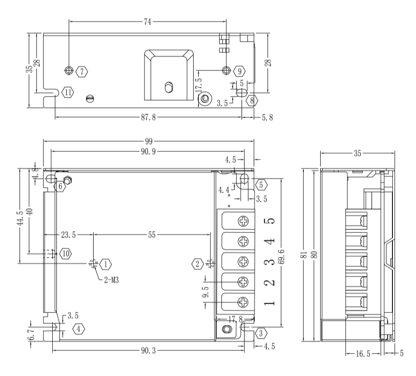 | 螺丝固定 | ①--② ⑦--⑨ | M3 | 5mm | 6.5kgf.cm |