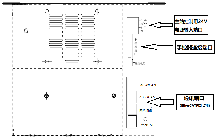 车床机械手控制系统驱控一体——EC-L3,三轴驱控一体车床机械手控制系统箱体整体接线说明: