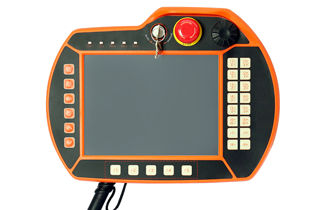 EC-RX系列机器人控制系统——为qy球友会(中国)六轴关节机器人控制系统专用手控器,操作面板上的F1-F5按键作用,手控器上具体位置如下: