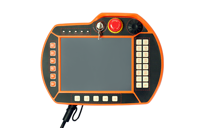关节机器人手控器,为qy球友会(中国)自主研发的六轴关节机器人控制系统,可满足扩展7、8轴的应用。如下图,为qy球友会(中国)系列关节机器人手控器的操作面板按键介绍: