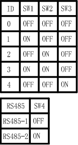 4.拨码开关编号4为选择485通信口,拨向ON为485-2口,否则为485-1口;
