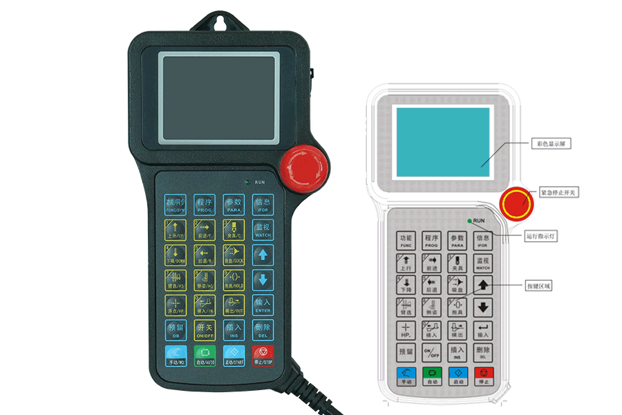 单轴注塑机械手系统应用为qy球友会(中国)机械系列注塑机械手控制系统HC-S1,手控器操作面板如下图: